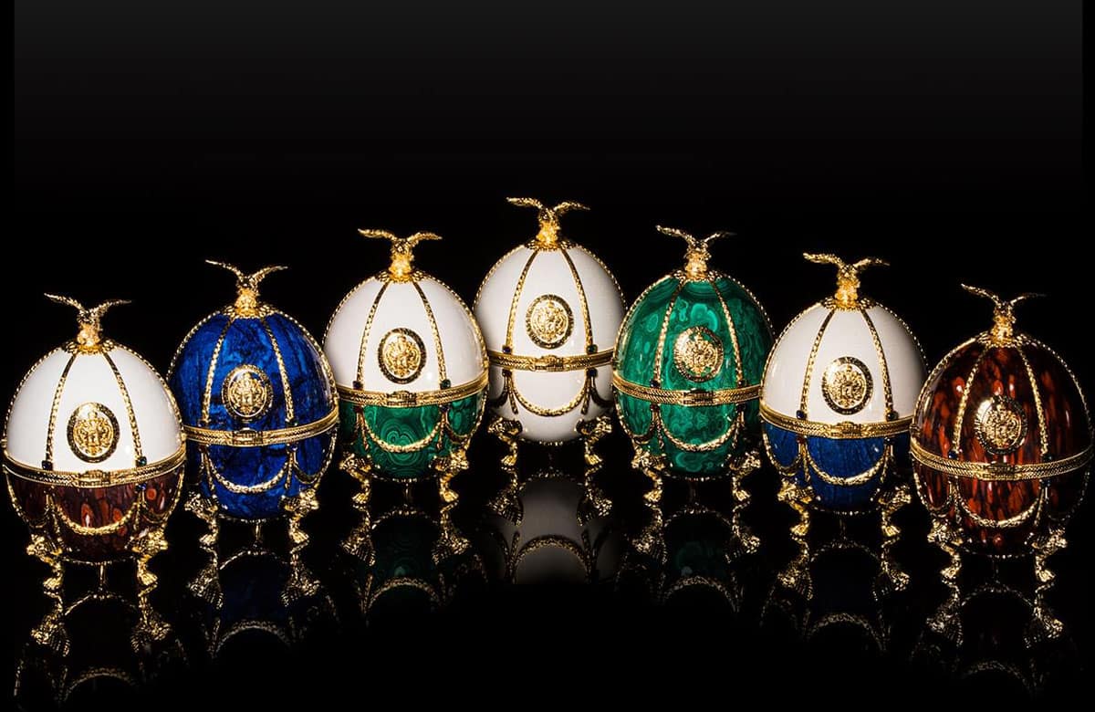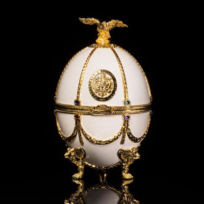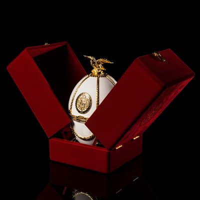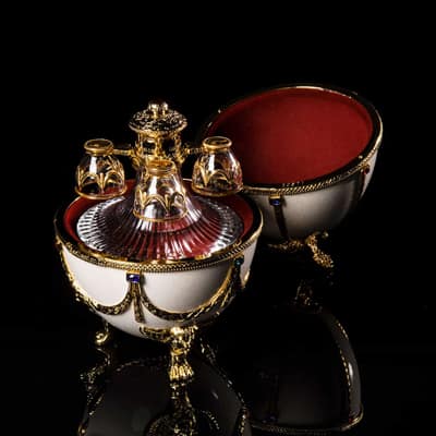 「Imperial Collection(インぺリアルコレクション)」は、ハンドメイドの装飾を施したイースターエッグにおさめられた高級スピリッツで、その細部まで施された華やかな装飾と、ハンドクラフトならではの優雅な美しさが魅力の商品です。まるで宝石のような美しいエッグには、ハンドメイドの装飾が施された優美なデキャンタが収められ、さらにこれらは高貴な赤いベルベットケースに収められています。